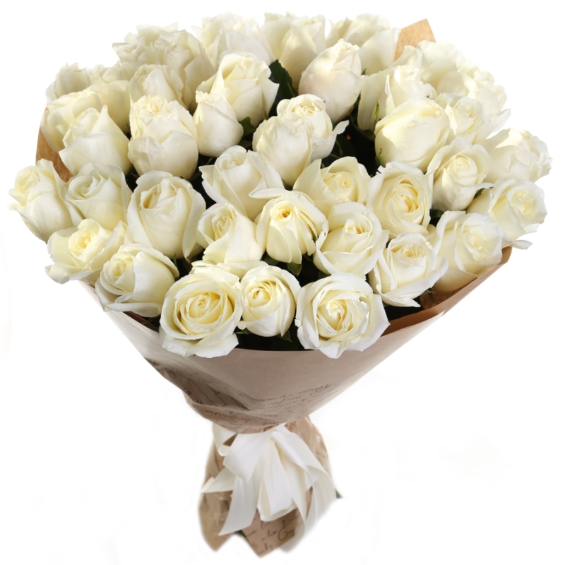 Букет из 31 белой розы в крафте
